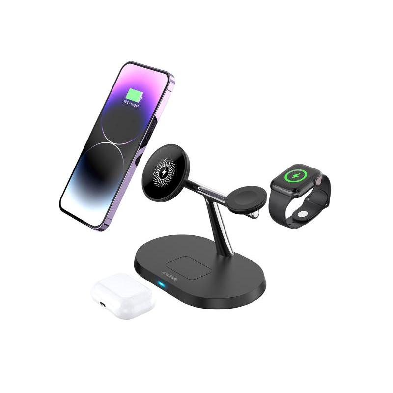 maXlife 3-i-1 trådløs oplader 15W Sort